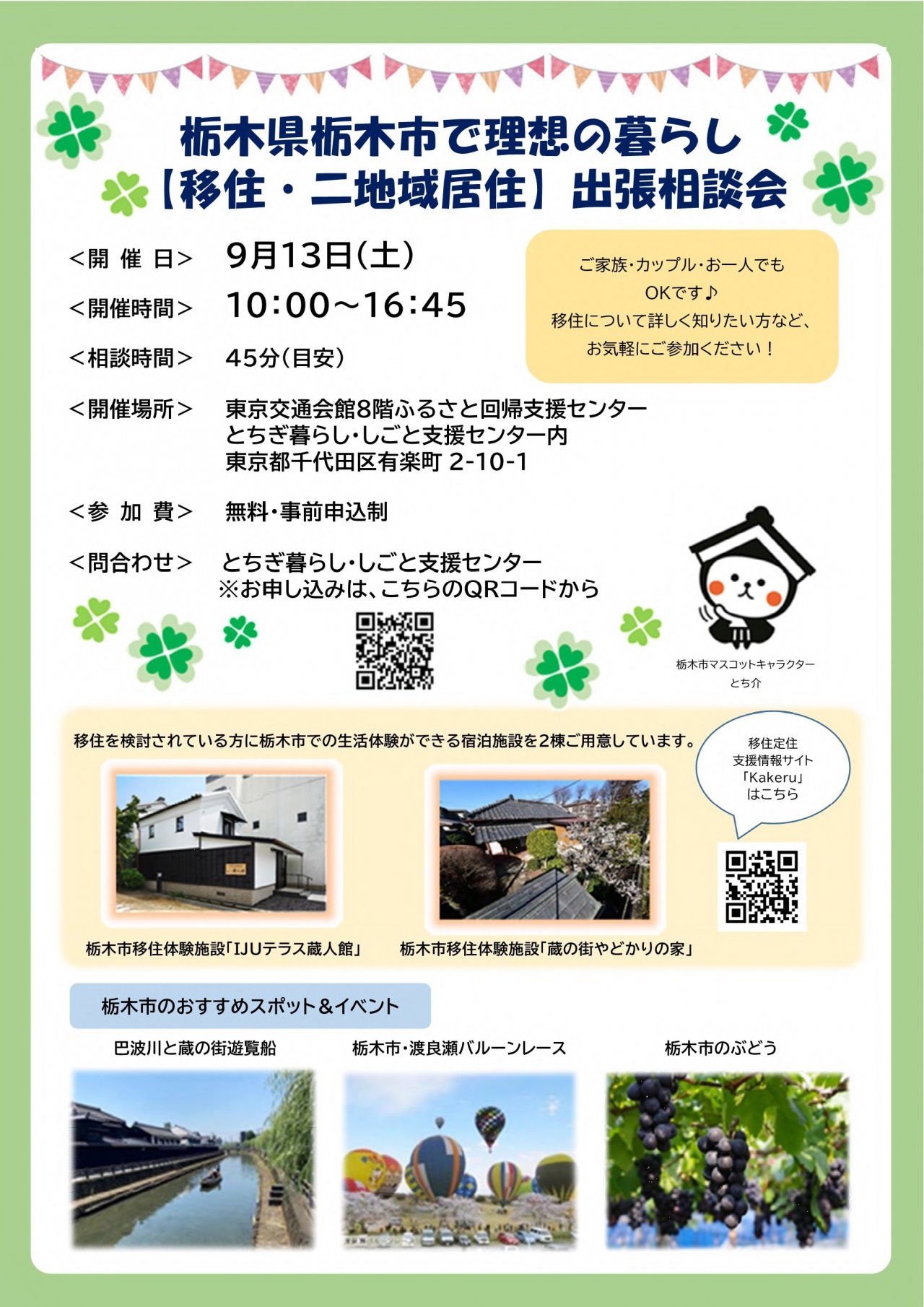 【9/13(土)】栃木県栃木市で理想の暮らし【移住・二地域居住】出張相談会 |移住関連イベント情報|FURUSATO